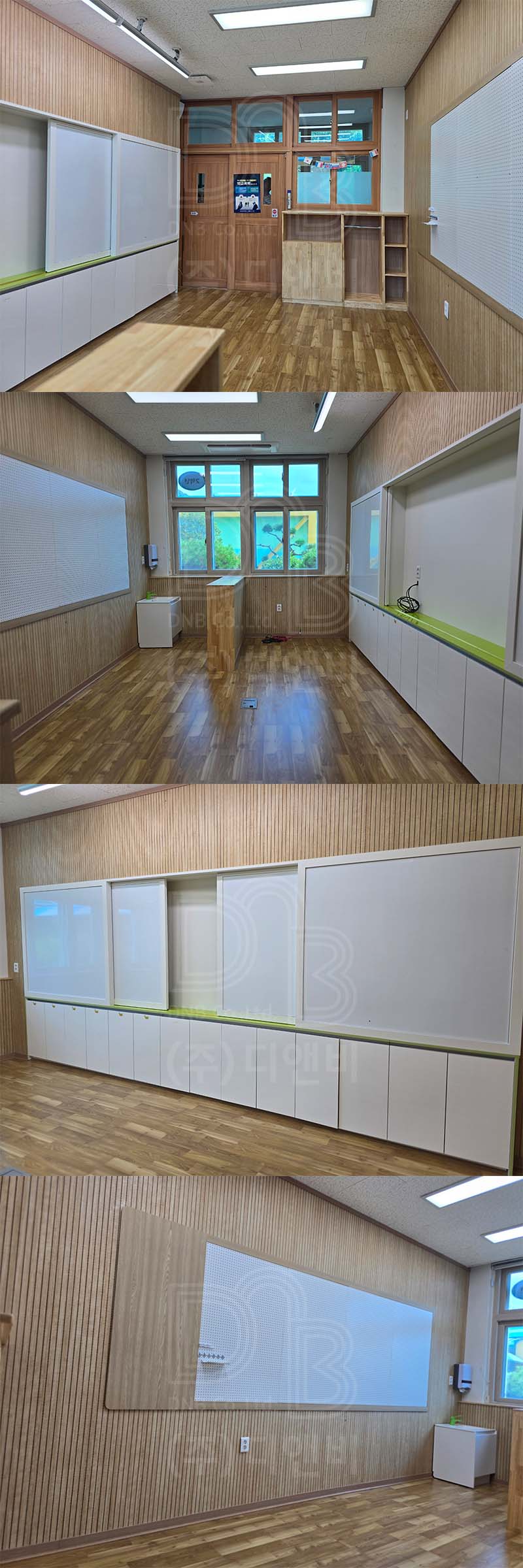 각 구역의 용도에 따라 바닥, 벽체, 수납장, 칠판장이 맞춤 시공되었습니다.