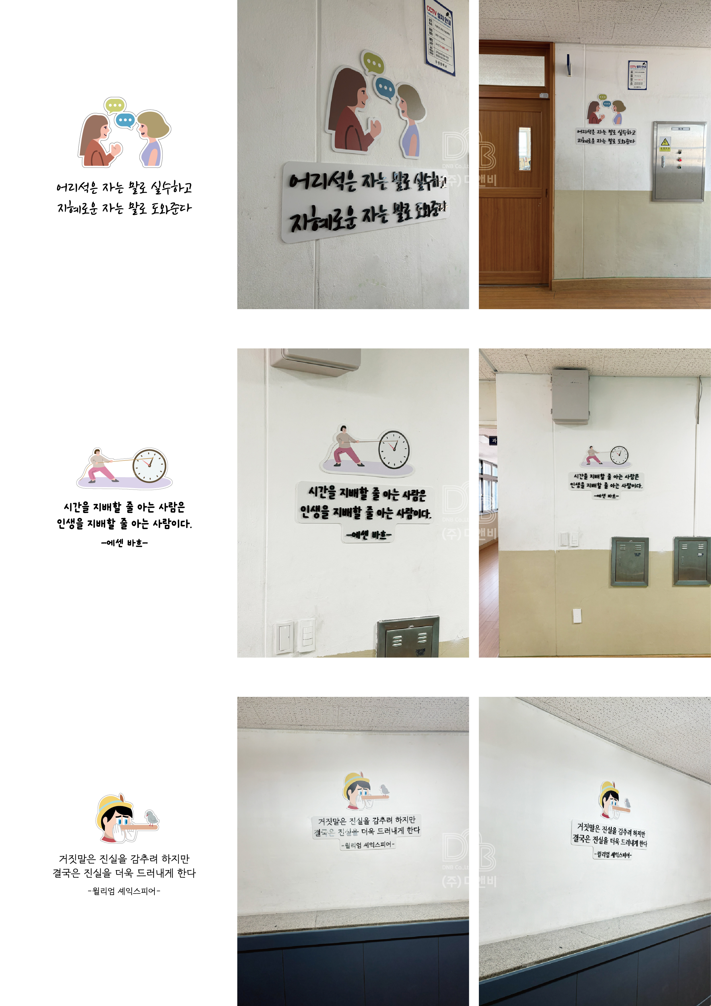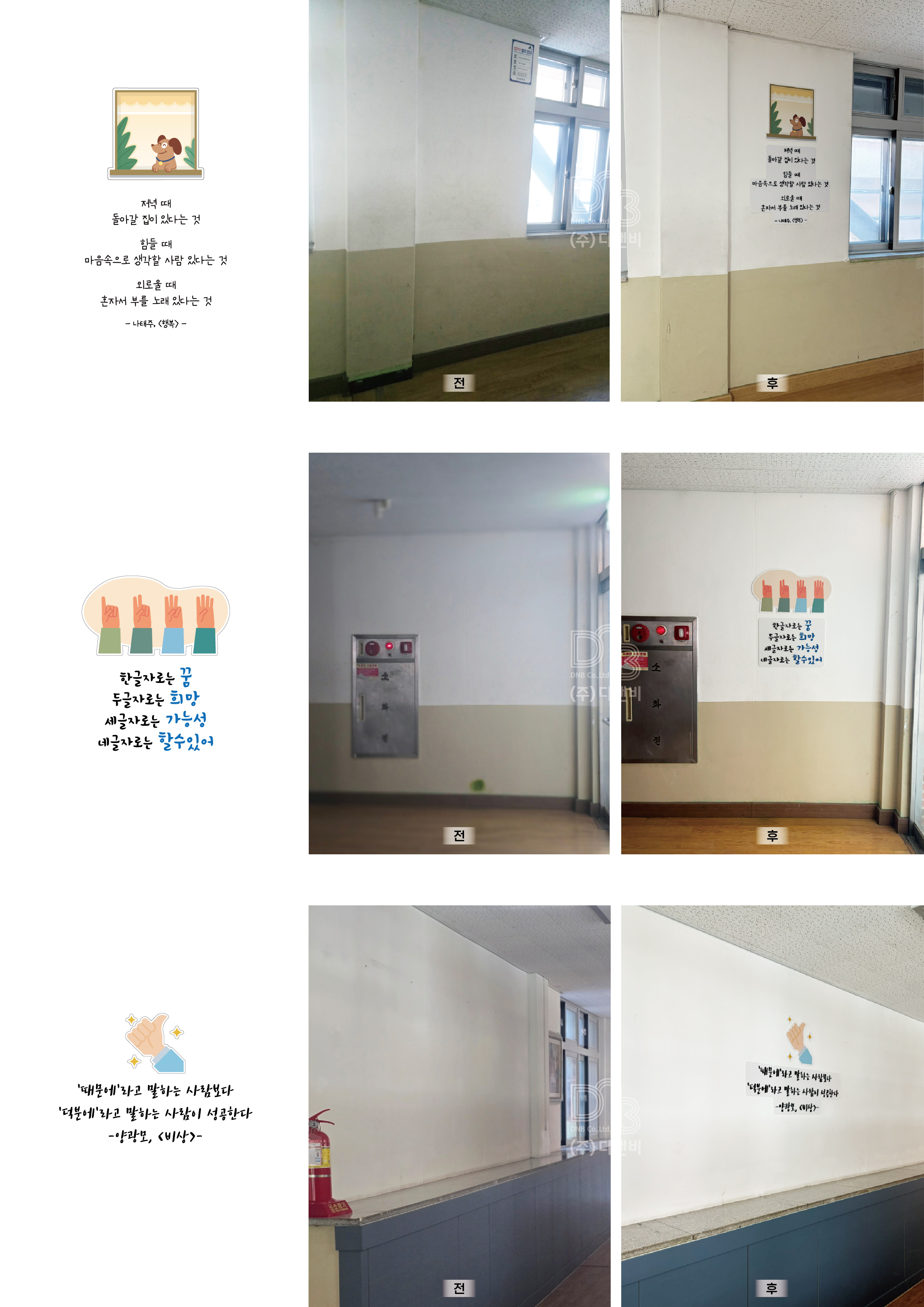 허전하고 밋밋한 학교, 학원 복도 벽에 생기를 불어넣어주는 캘리그라피 이미지 출력물을 소개합니다~!